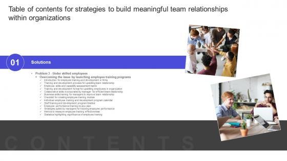 Do you have to make sure that everyone on your team knows about any specific topic I yes, then you should give Table Of Contents Strategies To Build Meaningful Team Relationships Within Themes PDF a try. Our experts have put a lot of knowledge and effort into creating this impeccable Table Of Contents Strategies To Build Meaningful Team Relationships Within Themes PDF You can use this template for your upcoming presentations, as the slides are perfect to represent even the tiniest detail. You can download these templates from the Slidegeeks website and these are easy to edit. So grab these today Our Table Of Contents Strategies To Build Meaningful Team Relationships Within Themes PDF are topically designed to provide an attractive backdrop to any subject. Use them to look like a presentation pro.