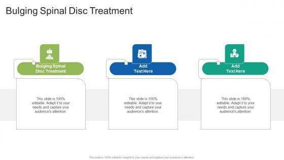 Introducing our well-designed Bulging Spinal Disc Treatment In Powerpoint And Google Slides Cpb. This PowerPoint design presents information on topics like Bulging Spinal Disc Treatment. As it is predesigned it helps boost your confidence level. It also makes you a better presenter because of its high-quality content and graphics. This PPT layout can be downloaded and used in different formats like PDF, PNG, and JPG. Not only this, it is available in both Standard Screen and Widescreen aspect ratios for your convenience. Therefore, click on the download button now to persuade and impress your audience. Our Bulging Spinal Disc Treatment In Powerpoint And Google Slides Cpb are topically designed to provide an attractive backdrop to any subject. Use them to look like a presentation pro.