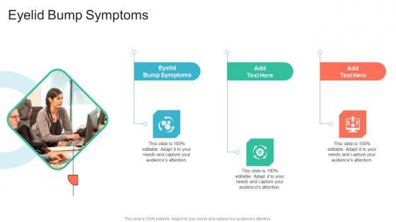 Presenting our innovatively designed set of slides titled Eyelid Bump Symptoms In Powerpoint And Google Slides Cpb This completely editable PowerPoint graphic exhibits Eyelid Bump Symptoms that will help you convey the message impactfully. It can be accessed with Google Slides and is available in both standard screen and widescreen aspect ratios. Apart from this, you can download this well structured PowerPoint template design in different formats like PDF, JPG, and PNG. So, click the download button now to gain full access to this PPT design. Our Eyelid Bump Symptoms In Powerpoint And Google Slides Cpb are topically designed to provide an attractive backdrop to any subject. Use them to look like a presentation pro.