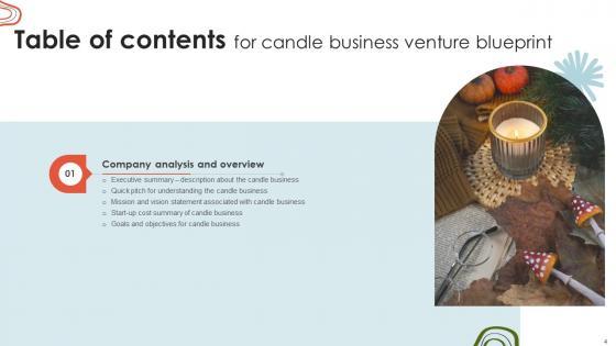 This Candle Business Venture Blueprint Powerpoint Presentation Slides BP V is a primer on how to capitalize on business opportunities through planning, innovation, and market intelligence. The content-ready format of the complete deck will make your job as a decision-maker a lot easier. Use this ready-made PowerPoint Template to help you outline an extensive and legible plan to capture markets and grow your company on the right path, at an exponential pace. What is even more amazing is that this presentation is completely editable and 100 percent customizable. This Sixty Five slide complete deck helps you impress a roomful of people with your expertise in business and even presentation. Craft such a professional and appealing presentation for that amazing recall value. Download now. Our Candle Business Venture Blueprint Powerpoint Presentation Slides BP V are topically designed to provide an attractive backdrop to any subject. Use them to look like a presentation pro.