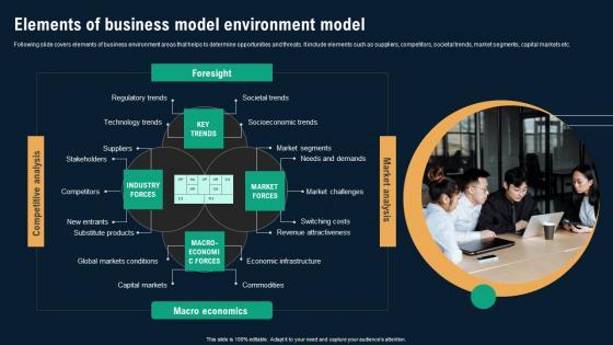 Following slide covers elements of business environment areas that helps to determine opportunities and threats. It include elements such as suppliers, competitors, societal trends, market segments, capital markets etc. Explore a selection of the finest Elements Of Business Model Environment Model Microsoft PDF here. With a plethora of professionally designed and pre-made slide templates, you can quickly and easily find the right one for your upcoming presentation. You can use our Elements Of Business Model Environment Model Microsoft PDF to effectively convey your message to a wider audience. Slidegeeks has done a lot of research before preparing these presentation templates. The content can be personalized and the slides are highly editable. Grab templates today from Slidegeeks.