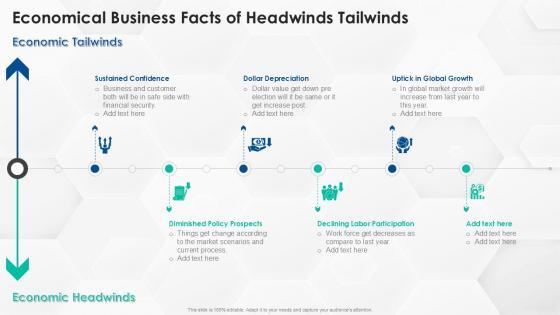 Take your projects to the next level with our ultimate collection of Economical Business Facts Of Headwinds Tailwinds. Slidegeeks has designed a range of layouts that are perfect for representing task or activity duration, keeping track of all your deadlines at a glance. Tailor these designs to your exact needs and give them a truly corporate look with your own brand colors they will make your projects stand out from the rest We have designed the slides for our presentation of Headwinds Tailwinds with an economical business-based perspective, giving clarity and conciseness to economic trends that impact businesses. Such headwinds details go along with opportunities created by tailwinds thus, they offer a balance for market dynamics. These presentation slides with visually engaging layouts and data-driven graphics are thus helpful in communicating key business facts and strategies to professionals.