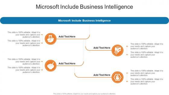 Introducing our well-designed Microsoft Include Business Intelligence In Powerpoint And Google Slides Cpb. This PowerPoint design presents information on topics like Microsoft Include Business Intelligence. As it is predesigned it helps boost your confidence level. It also makes you a better presenter because of its high-quality content and graphics. This PPT layout can be downloaded and used in different formats like PDF, PNG, and JPG. Not only this, it is available in both Standard Screen and Widescreen aspect ratios for your convenience. Therefore, click on the download button now to persuade and impress your audience. Our Microsoft Include Business Intelligence In Powerpoint And Google Slides Cpb are topically designed to provide an attractive backdrop to any subject. Use them to look like a presentation pro.