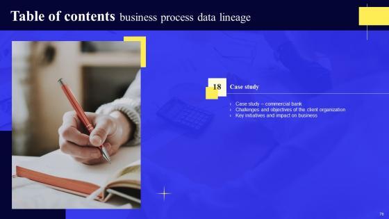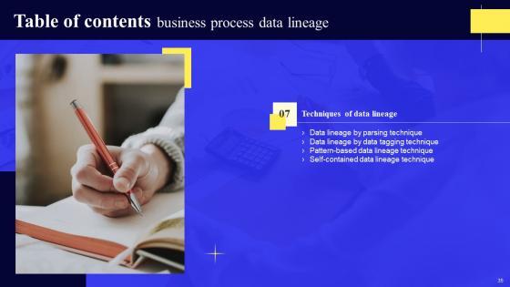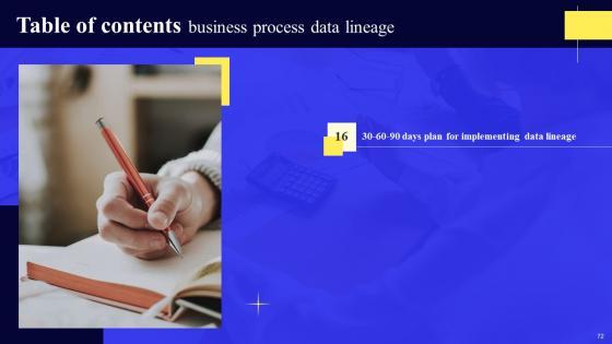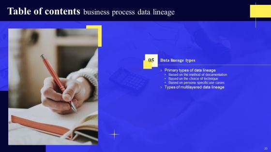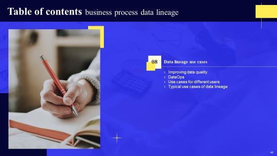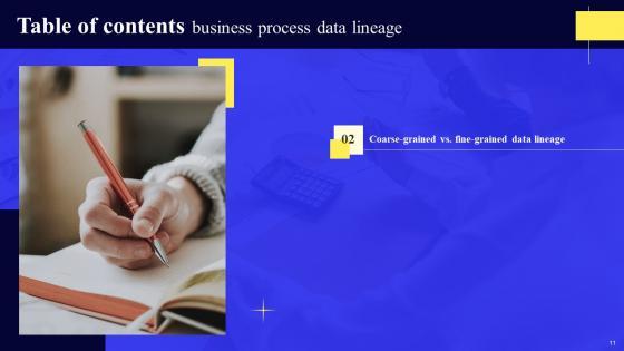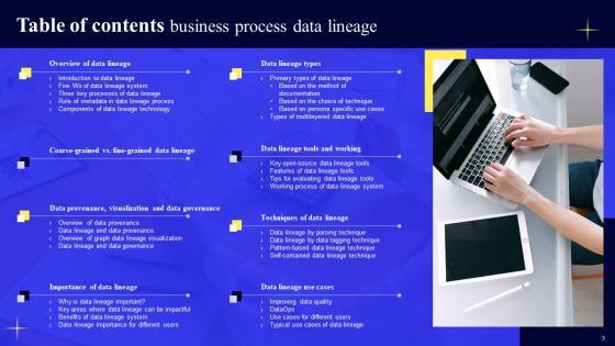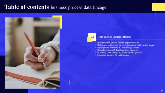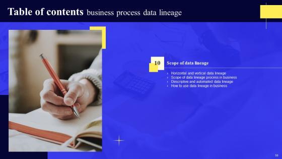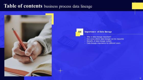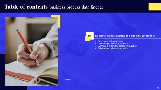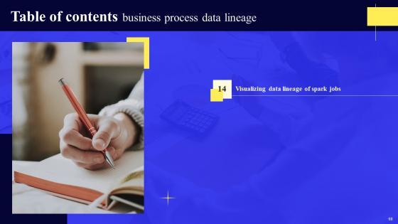 Explore a selection of the finest Table Of Contents Business Process Data Lineage Ideas Pdf here. With a plethora of professionally designed and pre made slide templates, you can quickly and easily find the right one for your upcoming presentation. You can use our Table Of Contents Business Process Data Lineage Ideas Pdf to effectively convey your message to a wider audience. Slidegeeks has done a lot of research before preparing these presentation templates. The content can be personalized and the slides are highly editable. Grab templates today from Slidegeeks. Our Table Of Contents Business Process Data Lineage Ideas Pdf are topically designed to provide an attractive backdrop to any subject. Use them to look like a presentation pro.