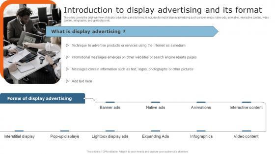 This slide covers the brief overview of display advertising and its forms. It includes format of display advertising such as banner ads, native ads, animation, interactive content, video content, infographic, pop up displays etc. Make sure to capture your audiences attention in your business displays with our gratis customizable Techniques To Optimize Business Performance Introduction To Display Advertising And Its Format Themes Pdf. These are great for business strategies, office conferences, capital raising or task suggestions. If you desire to acquire more customers for your tech business and ensure they stay satisfied, create your own sales presentation with these plain slides. This slide covers the brief overview of display advertising and its forms. It includes format of display advertising such as banner ads, native ads, animation, interactive content, video content, infographic, pop up displays etc.
