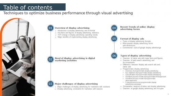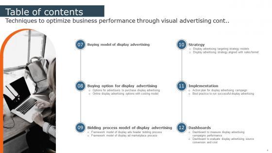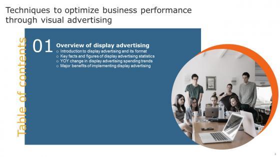 There are so many reasons you need a Table Of Contents Techniques To Optimize Business Performance Through Visual Advertising Mockup Pdf. The first reason is you can not spend time making everything from scratch, Thus, Slidegeeks has made presentation templates for you too. You can easily download these templates from our website easily. Our Table Of Contents Techniques To Optimize Business Performance Through Visual Advertising Mockup Pdf are topically designed to provide an attractive backdrop to any subject. Use them to look like a presentation pro.