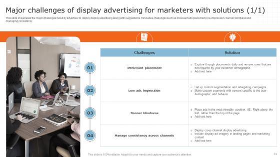 This slide showcases the major challenges faced by advertiser to deploy display advertising along with suggestions. It includes challenges such as irrelevant ads placement, low impression, banner blindness and managing consistency. This Techniques To Optimize Business Performance Major Challenges Of Display Advertising Summary Pdf is perfect for any presentation, be it in front of clients or colleagues. It is a versatile and stylish solution for organizing your meetings. The Techniques To Optimize Business Performance Major Challenges Of Display Advertising Summary Pdf features a modern design for your presentation meetings. The adjustable and customizable slides provide unlimited possibilities for acing up your presentation. Slidegeeks has done all the homework before launching the product for you. So, do not wait, grab the presentation templates today This slide showcases the major challenges faced by advertiser to deploy display advertising along with suggestions. It includes challenges such as irrelevant ads placement, low impression, banner blindness and managing consistency.