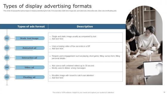 This slide showcase the various types of display advertising formats. It incorporates static text image ads, animated ads, interactive ads, video ads and floating ads. Take your projects to the next level with our ultimate collection of Techniques To Optimize Business Performance Types Of Display Advertising Formats Template Pdf. Slidegeeks has designed a range of layouts that are perfect for representing task or activity duration, keeping track of all your deadlines at a glance. Tailor these designs to your exact needs and give them a truly corporate look with your own brand colors they well make your projects stand out from the rest. This slide showcase the various types of display advertising formats. It incorporates static text image ads, animated ads, interactive ads, video ads and floating ads.
