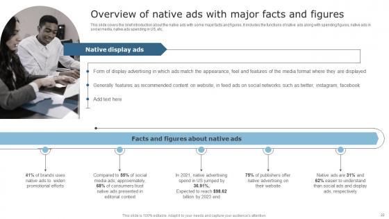This slide covers the brief introduction about the native ads with some major facts and figures. It includes the functions of native ads along with spending figures, native ads in social media, native ads spending in US, etc. Retrieve professionally designed Techniques To Optimize Business Performance Overview Of Native Ads With Major Facts Graphics Pdf to effectively convey your message and captivate your listeners. Save time by selecting pre-made slideshows that are appropriate for various topics, from business to educational purposes. These themes come in many different styles, from creative to corporate, and all of them are easily adjustable and can be edited quickly. Access them as PowerPoint templates or as Google Slides themes. You do not have to go on a hunt for the perfect presentation because Slidegeeks got you covered from everywhere. This slide covers the brief introduction about the native ads with some major facts and figures. It includes the functions of native ads along with spending figures, native ads in social media, native ads spending in US, etc.