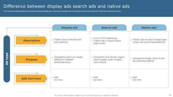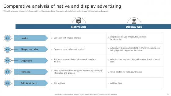 The mentioned slide provides the comparison between display ads, search ads and native ads. It compares various ads on the basis of function and purpose of ads. If you are looking for a format to display your unique thoughts, then the professionally designed Techniques To Optimize Business Performance Difference Between Display Ads Search Ads Demonstration Pdf is the one for you. You can use it as a Google Slides template or a PowerPoint template. Incorporate impressive visuals, symbols, images, and other charts. Modify or reorganize the text boxes as you desire. Experiment with shade schemes and font pairings. Alter, share or cooperate with other people on your work. Download Techniques To Optimize Business Performance Difference Between Display Ads Search Ads Demonstration Pdf and find out how to give a successful presentation. Present a perfect display to your team and make your presentation unforgettable. The mentioned slide provides the comparison between display ads, search ads and native ads. It compares various ads on the basis of function and purpose of ads.