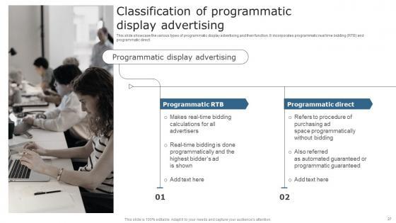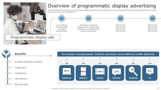 This slide covers the brief overview of programmatic display advertising or real time bidding. It also includes benefits and some facts about programmatic business purchase across various media platforms. Presenting this PowerPoint presentation, titled Techniques To Optimize Business Performance Overview Of Programmatic Display Demonstration Pdf, with topics curated by our researchers after extensive research. This editable presentation is available for immediate download and provides attractive features when used. Download now and captivate your audience. Presenting this Techniques To Optimize Business Performance Overview Of Programmatic Display Demonstration Pdf. Our researchers have carefully researched and created these slides with all aspects taken into consideration. This is a completely customizable Techniques To Optimize Business Performance Overview Of Programmatic Display Demonstration Pdf that is available for immediate downloading. Download now and make an impact on your audience. Highlight the attractive features available with our PPTs. This slide covers the brief overview of programmatic display advertising or real time bidding. It also includes benefits and some facts about programmatic business purchase across various media platforms.