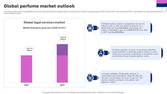 The purpose of this slide is to highlight the market size of the global perfume market outlook, including its share in 2021, forecasted value in 2027, and its CAGR. It also depicts that APAC accounted for the most significant portion of the worldwide market. If your project calls for a presentation, then Slidegeeks is your go-to partner because we have professionally designed, easy-to-edit templates that are perfect for any presentation. After downloading, you can easily edit Perfume Manufacturing Business Plan Global Perfume Market Outlook BP SS V and make the changes accordingly. You can rearrange slides or fill them with different images. Check out all the handy templates The purpose of this slide is to highlight the market size of the global perfume market outlook, including its share in 2021, forecasted value in 2027, and its CAGR. It also depicts that APAC accounted for the most significant portion of the worldwide market.