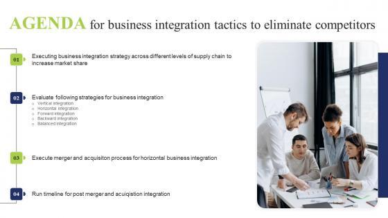 Slidegeeks is here to make your presentations a breeze with Agenda For Business Integration Tactics To Eliminate Competitors Summary Pdf With our easy to use and customizable templates, you can focus on delivering your ideas rather than worrying about formatting. With a variety of designs to choose from, you are sure to find one that suits your needs. And with animations and unique photos, illustrations, and fonts, you can make your presentation pop. So whether you are giving a sales pitch or presenting to the board, make sure to check out Slidegeeks first Our Agenda For Business Integration Tactics To Eliminate Competitors Summary Pdf are topically designed to provide an attractive backdrop to any subject. Use them to look like a presentation pro.