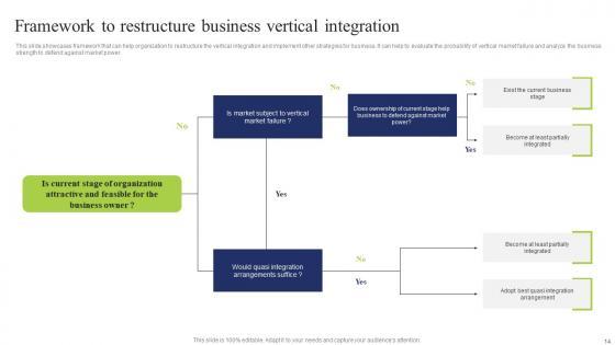 This slide showcases framework that can help organization to restructure the vertical integration and implement other strategies for business. It can help to evaluate the probability of vertical market failure and analyze the business strength to defend against market power If you are looking for a format to display your unique thoughts, then the professionally designed Business Integration Tactics To Eliminate Competitors Framework Restructure Business Infographics Pdf is the one for you. You can use it as a Google Slides template or a PowerPoint template. Incorporate impressive visuals, symbols, images, and other charts. Modify or reorganize the text boxes as you desire. Experiment with shade schemes and font pairings. Alter, share or cooperate with other people on your work. Download Business Integration Tactics To Eliminate Competitors Framework Restructure Business Infographics Pdf and find out how to give a successful presentation. Present a perfect display to your team and make your presentation unforgettable. This slide showcases framework that can help organization to restructure the vertical integration and implement other strategies for business. It can help to evaluate the probability of vertical market failure and analyze the business strength to defend against market power