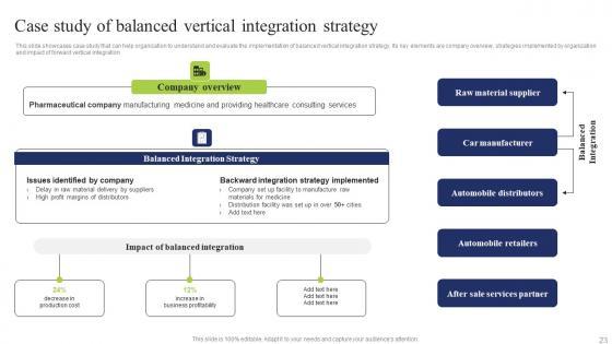 This slide showcases case study that can help organization to understand and evaluate the implementation of balanced vertical integration strategy. Its key elements are company overview, strategies implemented by organization and impact of forward vertical integration Make sure to capture your audiences attention in your business displays with our gratis customizable Case Study Of Balanced Vertical Business Integration Tactics To Eliminate Competitors Sample Pdf. These are great for business strategies, office conferences, capital raising or task suggestions. If you desire to acquire more customers for your tech business and ensure they stay satisfied, create your own sales presentation with these plain slides. This slide showcases case study that can help organization to understand and evaluate the implementation of balanced vertical integration strategy. Its key elements are company overview, strategies implemented by organization and impact of forward vertical integration