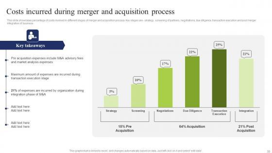 This slide showcases percentage of costs involved in different stages of merger and acquisition process. Key stages are strategy, screening of partners, negotiations, due diligence, transaction execution and post merger integration of business This Costs Incurred During Merger Business Integration Tactics To Eliminate Competitors Microsoft Pdf is perfect for any presentation, be it in front of clients or colleagues. It is a versatile and stylish solution for organizing your meetings. The Costs Incurred During Merger Business Integration Tactics To Eliminate Competitors Microsoft Pdf features a modern design for your presentation meetings. The adjustable and customizable slides provide unlimited possibilities for acing up your presentation. Slidegeeks has done all the homework before launching the product for you. So, do not wait, grab the presentation templates today This slide showcases percentage of costs involved in different stages of merger and acquisition process. Key stages are strategy, screening of partners, negotiations, due diligence, transaction execution and post merger integration of business