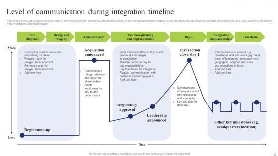 This slide showcases activities plus key levels of communication with employees, stakeholders etc for merger and acquisition integration. Its key elements are due diligence, ramp up, announcement, pre close planning, integration implementation and transformation Take your projects to the next level with our ultimate collection of Level Communication During Business Integration Tactics To Eliminate Competitors Information Pdf. Slidegeeks has designed a range of layouts that are perfect for representing task or activity duration, keeping track of all your deadlines at a glance. Tailor these designs to your exact needs and give them a truly corporate look with your own brand colors they will make your projects stand out from the rest This slide showcases activities plus key levels of communication with employees, stakeholders etc for merger and acquisition integration. Its key elements are due diligence, ramp up, announcement, pre close planning, integration implementation and transformation