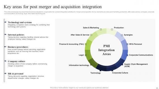 This slide showcases key areas that should be evaluated by organization for conduct integration activities for merger and acquisition. Its key elements are sales and marketing, production, after sales service, synergies, corporate communications, technology, legal, information technology etc Here you can discover an assortment of the finest PowerPoint and Google Slides templates. With these templates, you can create presentations for a variety of purposes while simultaneously providing your audience with an eye catching visual experience. Download Key Areas For Post Merger Business Integration Tactics To Eliminate Competitors Professional Pdf to deliver an impeccable presentation. These templates will make your job of preparing presentations much quicker, yet still, maintain a high level of quality. Slidegeeks has experienced researchers who prepare these templates and write high quality content for you. Later on, you can personalize the content by editing the Key Areas For Post Merger Business Integration Tactics To Eliminate Competitors Professional Pdf. This slide showcases key areas that should be evaluated by organization for conduct integration activities for merger and acquisition. Its key elements are sales and marketing, production, after sales service, synergies, corporate communications, technology, legal, information technology etc