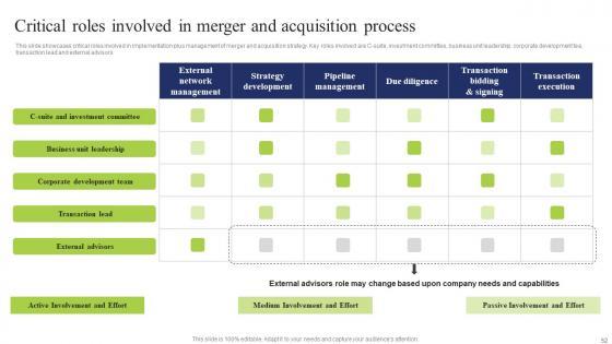 This slide showcases critical roles involved in implementation plus management of merger and acquisition strategy. Key roles involved are C suite, investment committee, business unit leadership, corporate development tea, transaction lead and external advisors Welcome to our selection of the Critical Roles Involved Merger Business Integration Tactics To Eliminate Competitors Clipart Pdf. These are designed to help you showcase your creativity and bring your sphere to life. Planning and Innovation are essential for any business that is just starting out. This collection contains the designs that you need for your everyday presentations. All of our PowerPoints are 100 percent editable, so you can customize them to suit your needs. This multi purpose template can be used in various situations. Grab these presentation templates today This slide showcases critical roles involved in implementation plus management of merger and acquisition strategy. Key roles involved are C suite, investment committee, business unit leadership, corporate development tea, transaction lead and external advisors