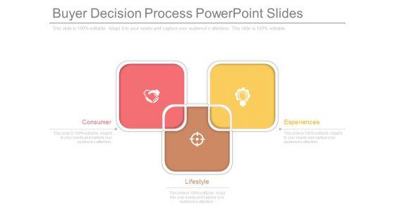 This is a buyer decision process powerpoint slides. This is a three stage process. The stages in this process are consumer, experiences, lifestyle.