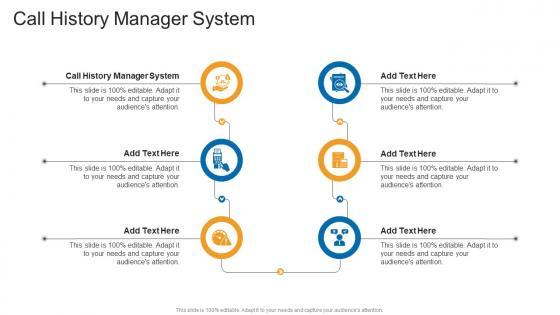 Introducing our well designed Call History Manager System In Powerpoint And Google Slides Cpb. This PowerPoint design presents information on topics like Call History Manager System. As it is predesigned it helps boost your confidence level. It also makes you a better presenter because of its high quality content and graphics. This PPT layout can be downloaded and used in different formats like PDF, PNG, and JPG. Not only this, it is available in both Standard Screen and Widescreen aspect ratios for your convenience. Therefore, click on the download button now to persuade and impress your audience. Our Call History Manager System In Powerpoint And Google Slides Cpb are topically designed to provide an attractive backdrop to any subject. Use them to look like a presentation pro.