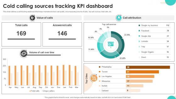 This slide outlines a call-tracking dashboard that helps marketers to track call quality, encompassing volume of calls, top call sources, total calls, etc. Do you have an important presentation coming up Are you looking for something that will make your presentation stand out from the rest Look no further than Ultimate Guide To Cold Calling Sources Tracking Kpi Dashboard SA SS V. With our professional designs, you can trust that your presentation will pop and make delivering it a smooth process. And with Slidegeeks, you can trust that your presentation will be unique and memorable. So why wait Grab Ultimate Guide To Cold Calling Sources Tracking Kpi Dashboard SA SS V today and make your presentation stand out from the rest This slide outlines a call-tracking dashboard that helps marketers to track call quality, encompassing volume of calls, top call sources, total calls, etc.
