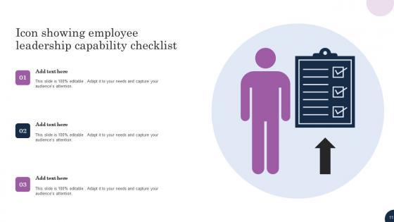 Showcasing this set of slides titled Icon Showing Employee Leadership Capability Checklist Structure Pdf The topics addressed in these templates are Icon Showing, Employee Leadership, Capability Checklist All the content presented in this PPT design is completely editable. Download it and make adjustments in color, background, font etc. as per your unique business setting. Our Icon Showing Employee Leadership Capability Checklist Structure Pdf are topically designed to provide an attractive backdrop to any subject. Use them to look like a presentation pro.