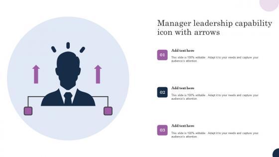 Showcasing this set of slides titled Manager Leadership Capability Icon With Arrows Structure Pdf The topics addressed in these templates are Manager Leadership, Capability Icon Arrows All the content presented in this PPT design is completely editable. Download it and make adjustments in color, background, font etc. as per your unique business setting. Our Manager Leadership Capability Icon With Arrows Structure Pdf are topically designed to provide an attractive backdrop to any subject. Use them to look like a presentation pro.