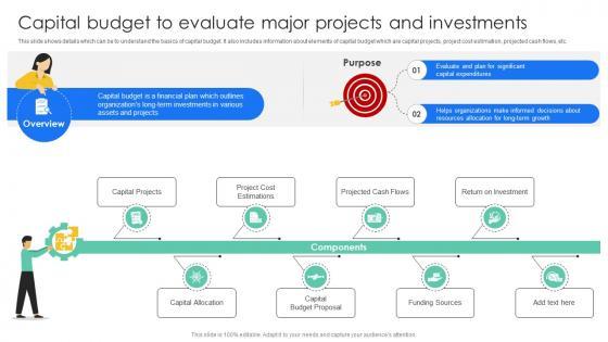 This slide shows details which can be to understand the basics of capital budget. It also includes information about elements of capital budget which are capital projects, project cost estimation, projected cash flows, etc. There are so many reasons you need a Capital Budget To Evaluate Major Projects Effective And Efficient Tools To Develop Fin SS V. The first reason is you can not spend time making everything from scratch, Thus, Slidegeeks has made presentation templates for you too. You can easily download these templates from our website easily. This slide shows details which can be to understand the basics of capital budget. It also includes information about elements of capital budget which are capital projects, project cost estimation, projected cash flows, etc.