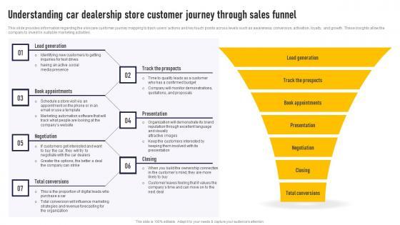 This slide provides information regarding the skincare customer journey mapping to track users actions and key touch points across levels such as awareness, conversion, activation, loyalty, and growth. These insights allow the company to invest in suitable marketing activities. This modern and well-arranged Understanding Car Dealership Store Customer Journey Auto Dealership Business Plan Inspiration Pdf provides lots of creative possibilities. It is very simple to customize and edit with the Powerpoint Software. Just drag and drop your pictures into the shapes. All facets of this template can be edited with Powerpoint no extra software is necessary. Add your own material, put your images in the places assigned for them, adjust the colors, and then you can show your slides to the world, with an animated slide included. This slide provides information regarding the skincare customer journey mapping to track users actions and key touch points across levels such as awareness, conversion, activation, loyalty, and growth. These insights allow the company to invest in suitable marketing activities.