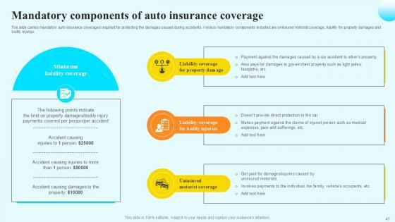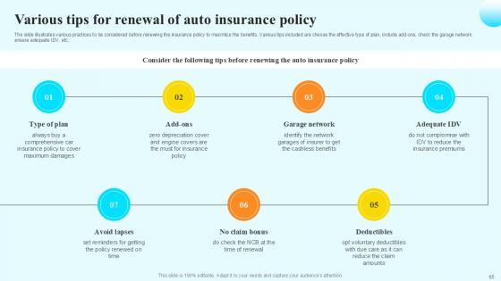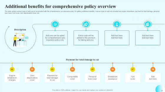 The slide carries the details of car theft claims covered under the comprehensive auto insurance policy. It includes description, documents required for filing claims, compensatory amount and time take for claim settlement. Presenting this PowerPoint presentation, titled Overview For Auto Insurance Steps By Step Guide For Claiming Car PPT Presentation, with topics curated by our researchers after extensive research. This editable presentation is available for immediate download and provides attractive features when used. Download now and captivate your audience. Presenting this Overview For Auto Insurance Steps By Step Guide For Claiming Car PPT Presentation. Our researchers have carefully researched and created these slides with all aspects taken into consideration. This is a completely customizable Overview For Auto Insurance Steps By Step Guide For Claiming Car PPT Presentation that is available for immediate downloading. Download now and make an impact on your audience. Highlight the attractive features available with our PPTs. The slide carries the details of car theft claims covered under the comprehensive auto insurance policy. It includes description, documents required for filing claims, compensatory amount and time take for claim settlement.
