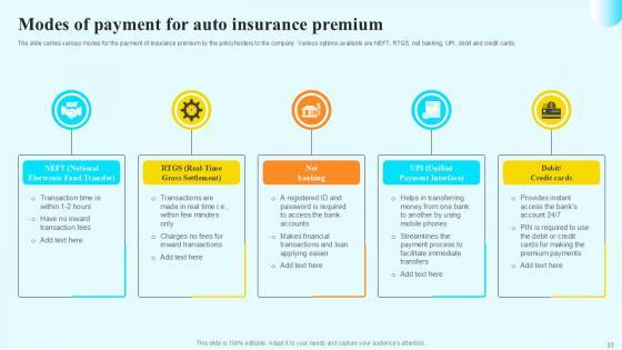 The slide highlights various steps of making online premium payments for ensuring immediate transactions. Various steps included are selecting the policy, mentioning the details, including add-ons, checking details and selecting mode of payment. Are you searching for a Online Insurance Premium Payment Steps By Step Guide For Claiming Car PPT Example that is uncluttered, straightforward, and original Its easy to edit, and you can change the colors to suit your personal or business branding. For a presentation that expresses how much effort you have put in, this template is ideal With all of its features, including tables, diagrams, statistics, and lists, its perfect for a business plan presentation. Make your ideas more appealing with these professional slides. Download Online Insurance Premium Payment Steps By Step Guide For Claiming Car PPT Example from Slidegeeks today. The slide highlights various steps of making online premium payments for ensuring immediate transactions. Various steps included are selecting the policy, mentioning the details, including add-ons, checking details and selecting mode of payment.