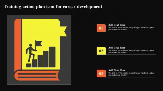 Pitch your topic with ease and precision using this Training Action Plan Icon For Career Development Designs Pdf. This layout presents information on Training Action Plan, Career Development. It is also available for immediate download and adjustment. So, changes can be made in the color, design, graphics or any other component to create a unique layout. Our Training Action Plan Icon For Career Development Designs Pdf are topically designed to provide an attractive backdrop to any subject. Use them to look like a presentation pro.