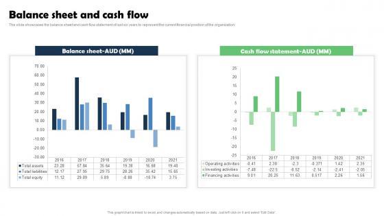 The slide showcases the balance sheet and cash flow statement of last six years to represent the current financial position of the organization. Boost your pitch with our creative Data Driven Marketing Solutions Firm Company Profile Balance Sheet And Cash Flow Guidelines PDF. Deliver an awe-inspiring pitch that will mesmerize everyone. Using these presentation templates you will surely catch everyones attention. You can browse the ppts collection on our website. We have researchers who are experts at creating the right content for the templates. So you do not have to invest time in any additional work. Just grab the template now and use them.