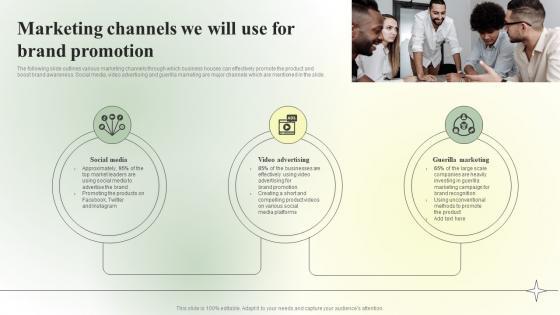 The following slide outlines various marketing channels through which business houses can effectively promote the product and boost brand awareness. Social media, video advertising and guerilla marketing are major channels which are mentioned in the slide. From laying roadmaps to briefing everything in detail, our templates are perfect for you. You can set the stage with your presentation slides. All you have to do is download these easy to edit and customizable templates. Marketing Channels We Will Use For Brand Promotion Summary PDF will help you deliver an outstanding performance that everyone would remember and praise you for. Do download this presentation today.