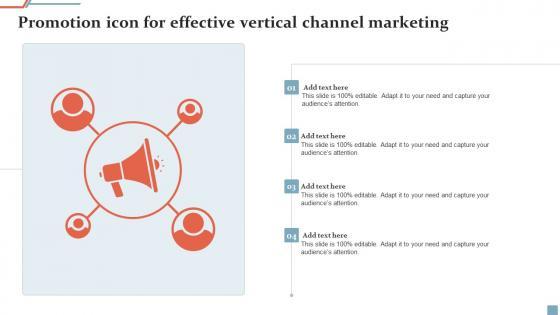 Pitch your topic with ease and precision using this Promotion Icon For Effective Vertical Channel Marketing Ppt Inspiration Images Pdf. This layout presents information on Promotion Icon, Effective Vertical Channel, Marketing. It is also available for immediate download and adjustment. So, changes can be made in the color, design, graphics or any other component to create a unique layout. Our Promotion Icon For Effective Vertical Channel Marketing Ppt Inspiration Images Pdf are topically designed to provide an attractive backdrop to any subject. Use them to look like a presentation pro.
