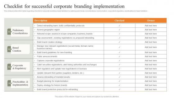 Checklist For Successful Corporate Branding Implementation Ppt PowerPoint Presentation File Deck PDF