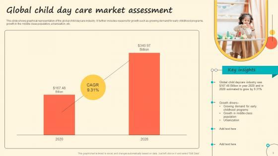The purpose of this slide is to conduct a thorough assessment of the daycare industry in addition to its market trends. It will help in studying the dynamics of market, such as market sizing, potential customer segments, buying patterns, competition, and other important factors. Get a simple yet stunning designed Daycare Market Analysis And Trends Childcare Business Plan Background Pdf. It is the best one to establish the tone in your meetings. It is an excellent way to make your presentations highly effective. So, download this PPT today from Slidegeeks and see the positive impacts. Our easy-to-edit Daycare Market Analysis And Trends Childcare Business Plan Background Pdfcan be your go-to option for all upcoming conferences and meetings. So, what are you waiting for Grab this template today. The purpose of this slide is to conduct a thorough assessment of the daycare industry in addition to its market trends. It will help in studying the dynamics of market, such as market sizing, potential customer segments, buying patterns, competition, and other important factors.