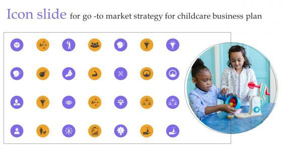 Presenting our innovatively structured Icon Slide For Go To Market Strategy For Childcare Business Plan Summary Pdf set of slides. The slides contain a hundred percent editable icons. You can replace these icons without any inconvenience. Therefore, pick this set of slides and create a striking presentation. Our Icon Slide For Go To Market Strategy For Childcare Business Plan Summary Pdf are topically designed to provide an attractive backdrop to any subject. Use them to look like a presentation pro.
