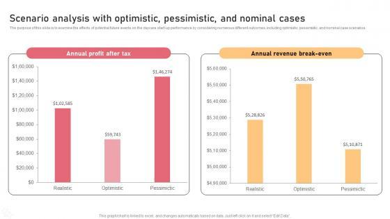 The purpose of this slide is to examine the effects of potential future events on the daycare start-up performance by considering numerous different outcomes, including optimistic, pessimistic, and nominal case scenarios. Slidegeeks has constructed Scenario Analysis With Optimistic Pessimistic And Nominal Contd Childcare Business Plan Diagrams Pdf after conducting extensive research and examination. These presentation templates are constantly being generated and modified based on user preferences and critiques from editors. Here, you will find the most attractive templates for a range of purposes while taking into account ratings and remarks from users regarding the content. This is an excellent jumping-off point to explore our content and will give new users an insight into our top-notch PowerPoint Templates. The purpose of this slide is to examine the effects of potential future events on the daycare start-up performance by considering numerous different outcomes, including optimistic, pessimistic, and nominal case scenarios.