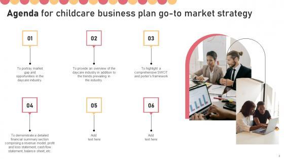 Find a pre-designed and impeccable Agenda For Go To Market Strategy For Childcare Business Plan Microsoft Pdf. The templates can ace your presentation without additional effort. You can download these easy-to-edit presentation templates to make your presentation stand out from others. So, what are you waiting for Download the template from Slidegeeks today and give a unique touch to your presentation. Our Agenda For Go To Market Strategy For Childcare Business Plan Microsoft Pdf are topically designed to provide an attractive backdrop to any subject. Use them to look like a presentation pro.