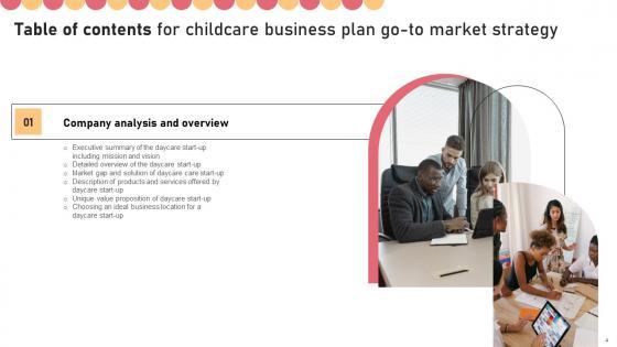 Make sure to capture your audiences attention in your business displays with our gratis customizable Go To Market Strategy For Childcare Business Plan Table Of Contents Download Pdf. These are great for business strategies, office conferences, capital raising or task suggestions. If you desire to acquire more customers for your tech business and ensure they stay satisfied, create your own sales presentation with these plain slides. Our Go To Market Strategy For Childcare Business Plan Table Of Contents Download Pdf are topically designed to provide an attractive backdrop to any subject. Use them to look like a presentation pro.