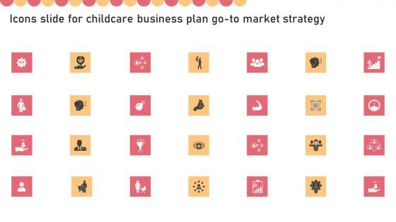 Help your business to create an attention-grabbing presentation using our Icons Slide For Childcare Business Plan Go To Market Strategy Clipart Pdf set of slides. The slide contains innovative icons that can be flexibly edited. Choose this Icons Slide For Childcare Business Plan Go To Market Strategy Clipart Pdf template to create a satisfactory experience for your customers. Go ahead and click the download button. Our Icons Slide For Childcare Business Plan Go To Market Strategy Clipart Pdf are topically designed to provide an attractive backdrop to any subject. Use them to look like a presentation pro.