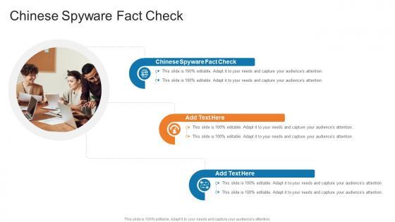 Introducing our well-designed Chinese Spyware Fact Check In Powerpoint And Google Slides Cpb. This PowerPoint design presents information on topics like Chinese Spyware Fact Check. As it is predesigned it helps boost your confidence level. It also makes you a better presenter because of its high-quality content and graphics. This PPT layout can be downloaded and used in different formats like PDF, PNG, and JPG. Not only this, it is available in both Standard Screen and Widescreen aspect ratios for your convenience. Therefore, click on the download button now to persuade and impress your audience. Our Chinese Spyware Fact Check In Powerpoint And Google Slides Cpb are topically designed to provide an attractive backdrop to any subject. Use them to look like a presentation pro.