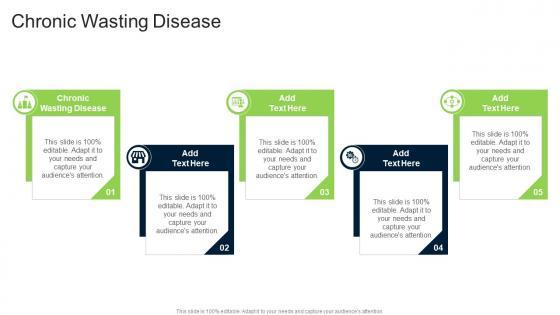 Presenting our innovatively designed set of slides titled Chronic Wasting Disease In Powerpoint And Google Slides Cpb. This completely editable PowerPoint graphic exhibits Chronic Wasting Disease that will help you convey the message impactfully. It can be accessed with Google Slides and is available in both standard screen and widescreen aspect ratios. Apart from this, you can download this well structured PowerPoint template design in different formats like PDF, JPG, and PNG. So, click the download button now to gain full access to this PPT design. Our Chronic Wasting Disease In Powerpoint And Google Slides Cpb are topically designed to provide an attractive backdrop to any subject. Use them to look like a presentation pro.
