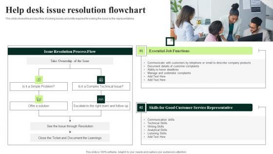 This slide shows the process flow of solving issues and skills required for solving the issue by the representatives. Explore a selection of the finest Client Feedback Strategies Help Desk Issue Resolution Flowchart Formats Pdf here. With a plethora of professionally designed and pre made slide templates, you can quickly and easily find the right one for your upcoming presentation. You can use our Client Feedback Strategies Help Desk Issue Resolution Flowchart Formats Pdf to effectively convey your message to a wider audience. Slidegeeks has done a lot of research before preparing these presentation templates. The content can be personalized and the slides are highly editable. Grab templates today from Slidegeeks. This slide shows the process flow of solving issues and skills required for solving the issue by the representatives.