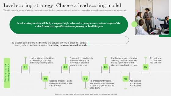 This slide covers the process of selecting a lead scoring model. It includes various models such as lead scoring, upselling, cross-selling, re-engagement, brand advocacy, etc. Find a pre-designed and impeccable Optimizing Client Lead Handling Lead Scoring Strategy Choose A Lead Scoring Model Download Pdf. The templates can ace your presentation without additional effort. You can download these easy-to-edit presentation templates to make your presentation stand out from others. So, what are you waiting for Download the template from Slidegeeks today and give a unique touch to your presentation. This slide covers the process of selecting a lead scoring model. It includes various models such as lead scoring, upselling, cross-selling, re-engagement, brand advocacy, etc.