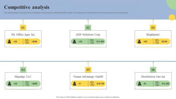This slide provides an overview of the competitors of cloud-based, multichannel ERP solution. The comparison is done on the basis of revenue and number of employees. Want to ace your presentation in front of a live audience Our Competitive Analysis Cloud Based ERP Software Investor Financing Elevator Pitch Deck Background Pdf can help you do that by engaging all the users towards you. Slidegeeks experts have put their efforts and expertise into creating these impeccable powerpoint presentations so that you can communicate your ideas clearly. Moreover, all the templates are customizable, and easy to edit and downloadable. Use these for both personal and commercial use. This slide provides an overview of the competitors of cloud-based, multichannel ERP solution. The comparison is done on the basis of revenue and number of employees.