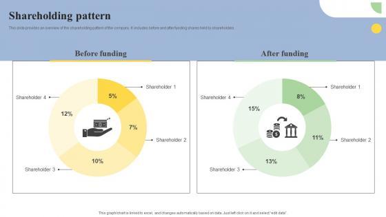 This slide provides an overview of the shareholding pattern of the company. It includes before and after funding shares held by shareholders. This modern and well arranged Shareholding Pattern Cloud Based ERP Software Investor Financing Elevator Pitch Deck Pictures Pdf provides lots of creative possibilities. It is very simple to customize and edit with the Powerpoint Software. Just drag and drop your pictures into the shapes. All facets of this template can be edited with Powerpoint, no extra software is necessary. Add your own material, put your images in the places assigned for them, adjust the colors, and then you can show your slides to the world, with an animated slide included. This slide provides an overview of the shareholding pattern of the company. It includes before and after funding shares held by shareholders.