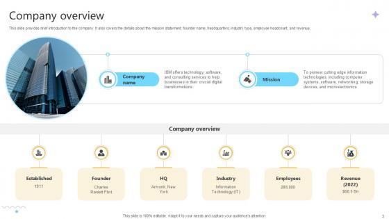 This slide provides brief introduction to the company. It also covers the details about the mission statement, founder name, headquarters, industry type, employee headcount, and revenue. Boost your pitch with our creative Company Overview Cloud Computing Services Business Model PPT PowerPoint. Deliver an awe-inspiring pitch that will mesmerize everyone. Using these presentation templates you will surely catch everyones attention. You can browse the ppts collection on our website. We have researchers who are experts at creating the right content for the templates. So you do not have to invest time in any additional work. Just grab the template now and use them. This slide provides brief introduction to the company. It also covers the details about the mission statement, founder name, headquarters, industry type, employee headcount, and revenue.